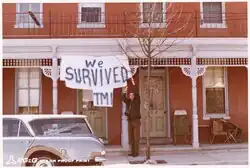 Middletown is located 3 miles (5 km) north of the Three Mile Island Nuclear Power Plant. The Unit #2 reactor at the Three Mile Island Nuclear Power Plant suffered a partial meltdown in 1979, causing then Pennsylvania governor Dick Thornburgh to order the evacuation of pregnant women and pre-school children from the area. Within days, 140,000 people had left the area.[7][8] President Jimmy Carter visited Middletown's Community Building to calm the nerves of anxious residents.