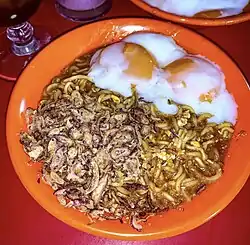 Main ingredientsFried noodles with half-cooked egg, chicken, fried onions