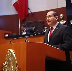 In the 2018 federal elections, he was nominated as a substitute for Alejandro González Yáñez, candidate for senator of the Republic for the state of Durango. On March 5, 2019, Lucero Olivas held the seat of first-round senator after González Yáñez requested a license from office to run in the 2019 Durango state election.[4] Within the Senate, he occupies the position of president of the mining and regional development commission.[1]