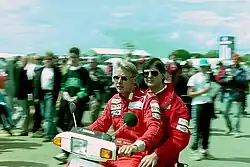 Häkkinen remained at McLaren for 1998, partnered by Coulthard. Häkkinen was confident going about the challenge for the World Championship into the season, citing the involvement of technical director Adrian Newey.[54] The season started off with controversy in Australia when teammate Coulthard let Häkkinen past to win the race. Häkkinen had earlier been called into the pit lane by an engineer by mistake. Coulthard later revealed a pre-race agreement by the team that whoever led into the first corner on the first lap would be allowed to win the race.[55] Despite this, Häkkinen took back-to-back victories by winning the next race in Brazil.[56] He maintained his good form at the Argentine Grand Prix where he finished second, although he retired from the San Marino Grand Prix when his car's gearbox failed. However, Häkkinen managed consecutive victories in the next two rounds, which was followed by a retirement from the race in Canada as his car suffered another gearbox failure.[57]
