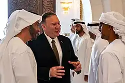 In August 2018, Pompeo thanked Crown Prince Mohammad bin Salman "for Saudi Arabia's support for northeast Syria's urgent stabilization needs".[81] Pompeo and Crown Prince also discussed the situation in war-torn Yemen.[82]