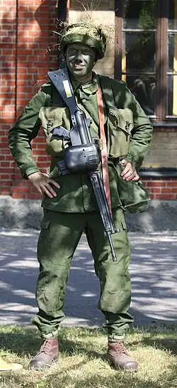 1986–present | Modern standard-issue assault rifle 4× tritium sight Multiple modifications by Bofors Multiple modifications by Bofors Lightweight carbine version Semi-automatic version with improved accuracy | |