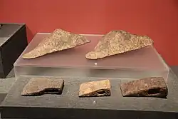 The dao, a single edged blade (saber), was separated into four categories during the Tang dynasty. These were the Ceremonial Dao, Defense Dao, Cross Dao, and Divided Dao. The Ceremonial Dao was a court item usually decorated with gold and silver. It was also known as the "Imperial Sword". The Defense Dao does not have any specifications but its name is self-explanatory. The Cross Dao was a waist weapon worn on the belt, hence its older name, the Belt Dao. It was often carried as a sidearm by crossbowmen.[27] The Divided Dao, also called a Long Dao (long saber), was a cross between a polearm and a saber. It consisted of a 91 cm blade fixed to a long 120 cm handle ending in an iron butt point, although exceptionally large weapons reaching 3 meters in length and weighing 10.2 kg have been mentioned.[28] Divided daos were wielded by elite Tang vanguard forces and used to spearhead attacks.[29]