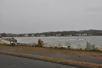 The Mill Cove Historic District is a 9-acre (3.6 ha) historic district in Westport, Connecticut, United States. The district was listed on the National Register of Historic Places in 1991. It consists of a small group of cottages, 15 of which are contributing buildings, and other cottages and outbuildings.[1] These well-preserved collection of Colonial Revival and Bungalow-style cottages were built between 1908 and 1940 on a barrier beach facing Long Island Sound, and are only accessible on foot. They are generally small in size and set on open lots, although some, like the house at 52 Compo Mill Cove, have a high hedge for privacy.[2]