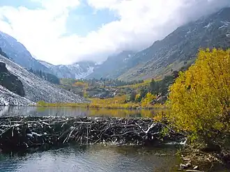 It is controversial whether North American beaver (Castor canadensis) were native to Mill Creek and the Mono Basin. Beaver were introduced, or re-introduced, along Mill Creek in the Mono Basin by the California Department of Fish and Game in the 1950s. The population thrives above Lundy Reservoir for nearly the entire length of upper Lundy Canyon and in recent years has been spreading to nearby creeks, including Wilson Creek, DeChambeau Creek, and Lee Vining Creek.[6]