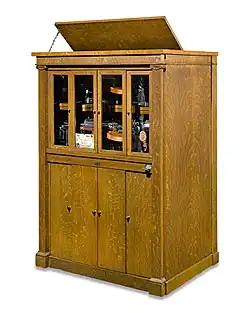 In 1928, Mills entered the market for coin-operated radios and multi-selection phonographs.[4] Between 1929 and 1948, the company manufactured and sold jukeboxes by the names of Hi-Boy, Troubadour, Dancemaster, Do-Re-Me, Swing King, Zephyr, Studio, Throne of Music, Empress, Panoram (a film-playing jukebox), and Constellation.[15] A 1935 Dancemaster jukebox may be seen and heard at the Musical Museum, Brentford, England.[16]