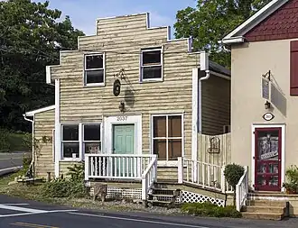 This district includes 10 additional contributing buildings in the village of Millwood. They include a log building (c. 1800) that was originally part of a tannery along Spout Run and later used a tollhouse; a log building (c. 1805) that was used to store liquor and was later converted into a residence; the frame miller's house (c. 1830 located directly south of the mill); a brick store (c. 1836 that partially burned in 1935 and still functions as a store). The remaining buildings are associated with the village's commercial core in the late 19th and early 20th centuries: a 1-story stone and frame outbuilding that may have once been used as a cooper's shop; a frame, 1 ½-story, late-19th century commercial building; a 1 ½-story frame commercial building that once housed the Millwood post office (c. 1900); a 1-story, formed concrete block building (constructed ca. 1928, as a car showroom and now used as an antique shop); and a 1-story, brick former service station (c. 1930) that has housed the post office since 1985. The commercial buildings are directly visible from the mill and the district was drawn to exclude residential, religious and educational buildings.[4]