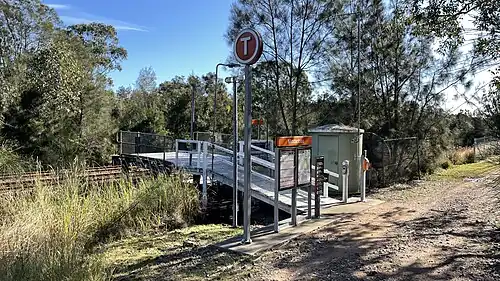 Mindaribba railway station is located on the North Coast line in New South Wales, Australia. Originally a full-length platform, it was later replaced by the present short platform.[2] It serves the rural locality of Mindaribba. It is served by NSW TrainLink Hunter Line services travelling between Newcastle and Dungog.