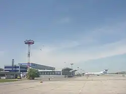 Mineralnye Vody Airport (Russian: Аэропорт Минеральные Воды) (IATA: MRV, ICAO: URMM) (also written as Mineralnyye Vody Airport, which "Mineralnye Vody" literally translates to Mineral Waters) is an airport in Stavropol Krai, Russia, located 4 kilometres (2.5 mi) west of Mineralnye Vody. It features a civilian terminal area on its west side with 41 parking spots. The airfield houses a Tupolev Tu-154 maintenance facility on the east side.