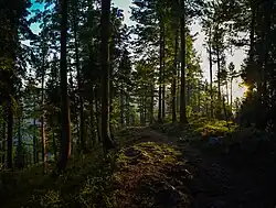 The Miranjani trek starts a few minutes drive away from the Governor House in Nathia Gali. The total length of the track is about 4.69 km and a net elevation of about 600 meters. Most of the path is soft dirt sparse with small rocks patches and hence is very easy to traverse with little effort. Intermediate to expert trekkers should be able to do it in 1 hour 15 mins to 2 hours. Beginners should also have no trouble and would be able to complete in 2–3 hours. The path to the peak is canopied with tall trees and is abundant in greenery. Nathia Gali, Mushkpuri Peak and Azad Kashmir are easily visible from the top. On a clear day even Nanga Parbat, the ninth highest mountain in the world, at a displacement of 166 km or a distance of more than 400 km can be seen shining with its snow clad peaks.