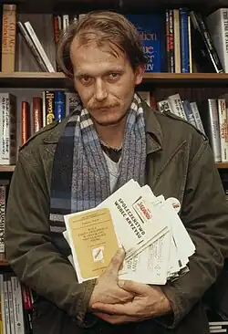 In September 1977 Chojecki created the Independent Publishing House "NOWa" which constituted the largest publishing house operating outside official communist censorship, becoming its leader.[5] Initially, Chojecki wanted NOWa to publish historical books on topics officially forbidden or ignored by the communist authorities, but other oppositionists convinced him to also issue works of literature, including those by Czesław Miłosz and Günter Grass. When Chojecki was arrested by the communist secret police Grass signed a petition demanding his freedom.[6] Along with Czesław Bielecki of CDN, Chojecki was one of the most important publishers collaborating with Kultura, the Polish emigre journal in Paris ran by Jerzy Giedroyc.[7]