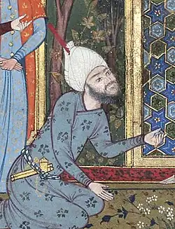![]() Mirza Salman Jaberi in the Būstān of Saʿdi (1579).[a] | |