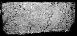 The Mirzapur stele inscription, also called the Mirjāpur stele inscription, is a dedicatory inscription on a large stone slab discovered in the Mirzapur area of Mathura which mentions the erection of a water tank by Mulavasu and his consort Kausiki, during the reign of the Sodasa, the Indo-Scythian Northern Satrap ruler of Mathura, assuming the title of "Svami (Lord) Mahakshatrapa (Great Satrap)".[1][2][3]