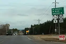 MS 57 has a couple more intersections with its former two-lane alignment before entering the town of State Line, which it mostly bypasses along its eastern side as it has an interchange with MS 42 (St. Peter Street), where it crosses into Wayne County. MS 57 comes to an end shortly thereafter at a large interchange with US 45.[3]