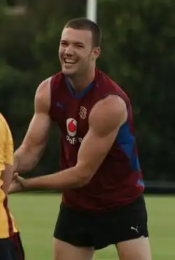 Although Clark was hit by meningococcal disease the week before the 2005 AFL Draft, Brisbane showed their strong interest, making him their first pick, the ninth player drafted across all clubs and presenting him with their number "1" guernsey; he later made a full recovery from his illness.[1] Clark made an impressive debut for the Brisbane Lions in the first round of the 2006 season against Geelong, converting his first mark and subsequent kick into a goal, but his debut season was significantly hampered by injury problems, in particular osteitis pubis,[2] and only ended up playing a total six games that season.