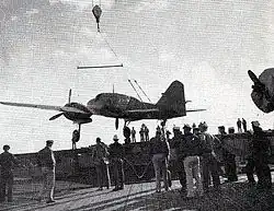 Although at first the Ki-46 proved almost immune from interception, the Imperial Japanese Army Air Force realised that improved Allied fighters such as the Supermarine Spitfire and P-38 Lightning could challenge this superiority, and in July 1942, it instructed Mitsubishi to produce a further improved version, the Ki-46-III.[6] This had more powerful, fuel-injected Mitsubishi Ha-112 engines, and a redesigned nose, with a fuel tank ahead of the pilot and a new canopy, smoothly faired from the extreme nose of the aircraft, eliminating the "step" of the earlier versions. The single defensive machine gun of the earlier aircraft was omitted not long into the production run. The new version first flew in December 1942, demonstrating significantly higher speed 630 km/h (391 mph) at 6,000 m (19,700 ft).[7] The performance of the Ki-46-III even proved superior to that of the aircraft intended to replace it (the Tachikawa Ki-70), which as a result did not enter production.[8] During operational testing in March 1944, it was discovered that replacing the engines' single exhaust collector ring with individual pipes provided extra thrust and an increase in top speed to 642 km/h (399 mph).[9]