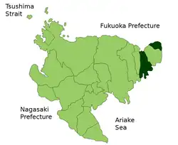 Miyaki District consists of three former districts of Hizen Province: Kii, Mine and Yabu Districts.