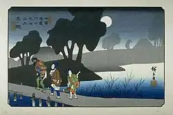 Hiroshige's print of Miyanokoshi-juku, part of the series The Sixty-nine Stations of the Kiso Kaidō