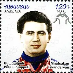 Mnatsakan Iskandaryan (Armenian: Մնացական Իսկանդարյան, Russian: Мнацакан Фрунзевич Искандарян; born 17 May 1967) is a former Armenian Greco-Roman wrestler who competed for the Soviet Union and Russia. Iskandaryan is an Olympic Champion, three-time World Champion, and two-time European Champion. He earned the rank Honoured Master of Sports of the USSR in 1991 and was named Honoured Coach of Russia in 2000. In 2012, Iskandaryan was inducted into the FILA Hall of Fame as the sole Greco-Roman inductee. He's the second Armenian to be inducted into the Hall of Fame, after Armen Nazaryan.[1]