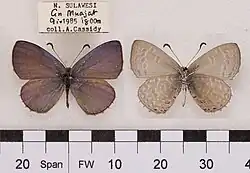 Monodontides cara is a butterfly of the family Lycaenidae. It is found on Sulawesi.