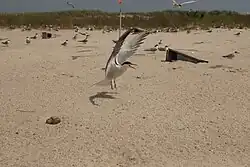 The island was taken over by the US government just before World War II and established as a National Wildlife Refuge in 1944. The island was also home to the Monomoy Island Gunnery Range from 1944 until 1951.[1] The refuge's goal is to provide habitat for migratory birds. The size of the refuge is 7,604 acres (31 km2) with varied habitats of oceans, salt and freshwater marshes, dunes, freshwater ponds, and some historic manmade structures, such as the Monomoy Point Light and keeper's quarters (decommissioned but open to the public). Part of the refuge is the Monomoy Wilderness.[2]