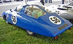de Montrémy designed the first racing Monopole himself. This car used the chassis and engine of a Simca 8, but clothed them in lightweight aluminium bodywork. Its debut race was at the Formula Libre Voiturette 2.0+1.1s at Reims on 6 July 1947, where the car finished seventh.[11] In 1948 two more Simca-Monopoles were built that used the Simca 8's engine, but these successors substituted custom-built lightweight chassis for the Simca original.[4] These cars were raced throughout 1948 and 1949, including the first appearance of a Monopole at Le Mans, where the car driven by de Montrémy and Eugène Dussous finished twelfth overall and first in the S 1.1 class.