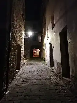 Below the village extends a rugged wooded area known as “Gli Scogli,” characterized by imposing rock formations that drop steeply into a ravine, nicknamed by children "the ravine of death",[5] due to a tragedy on July 9, 1949, when a nearly three-year-old boy, Alcaro Furio, lost his life after slipping while chasing a piglet. This area, mostly unspoiled, has over time become the setting for folk tales and legends, fueled by its mysterious charm and its role as a playground for generations of young people. Among the legends passed down orally, one is particularly well known, saying that under a tower house located in the current "Via degli Scogli," there was a trapdoor that concealed the entrance to an underground tunnel leading to the Pieve of San Giovanni in Sorciano.[1]