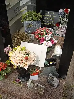 Whilst the most visited grave is that of Coluche, there are many other graves of interest,[1] as well as a crypt. Despite being a Parisian cemetery, the influence of Montrouge is noteworthy, most notably through the granite stele commemorating 96 soldiers from Montrouge fallen on World War I battlegrounds.