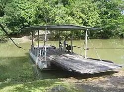 A hand-cranked ferry takes visitors across the river to the Maya site of Xunantunich.