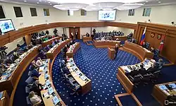The Moscow City Duma (Russian: Московская городская дума, romanized: Moskovskaya gorodskaya duma, commonly abbreviated to Мосгордума, Mosgorduma) is the regional parliament (city duma) of Moscow, a federal subject and the capital city of Russia.[1] As Moscow is one of three federal cities,[a] the city duma's legislation can only be overridden by the mayor and the federal government.