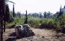 Motul de San José is located 3 kilometres (1.9 mi) from the north shore of Lake Petén Itzá, in the centre of the department of El Petén.[6] The nearest town is Flores, 10.5 kilometres (6.5 mi) to the south, on the other side of the lake. The nearest villages are San José, 5 kilometres (3.1 mi) away, and San Andrés, 6.5 kilometres (4.0 mi) away, both are to the south of the site, on the northern shore of the lake. The archaeological site is connected to Nuevo San José, a northern expansion of San José, by a dirt road.[7] It lies among land that has been cleared of forest within the last century and is now used to plant maize and graze cattle.[8]