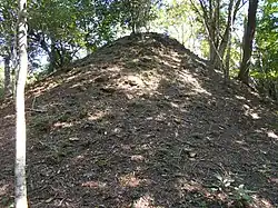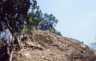 Motul de San José lies on a limestone plateau at the northern edge of the fault depression that underlies the central lakes of the Petén Basin.[9] The local topography consists of ridges, generally running east–west or northeast–southwest alternating with lower-lying areas with clay soils. These low-lying areas tend to feed into drainage systems flowing into either Lake Petén Itzá itself or into the Akte River. The Kantetul River is a seasonal watercourse with its origin 5 kilometres (3.1 mi) to the northeast of the site and flowing westwards into the Akte River, passing 2 kilometres (1.2 mi) from the site core.[10] The Akte River in turn flows west into the San Pedro River, which flows northwest into Mexico where it joins the Usumacinta River and ultimately empties into the Gulf of Mexico. A mixture of ancient and modern agricultural terraces line the riverbank, 2 kilometres (1.2 mi) north of the site core.[11] Access to water was crucial for Maya cities, since much of the Maya lowlands have been described as a seasonal desert due to the combination of a prolonged dry season lasting between four and six months together with the limestone geography that makes surface water scarce.[12] In addition the Maya greatly preferred water to land transport and used canoes to trade extensively by river and sea, and access to river routes connected cities to extensive trade routes.[13]