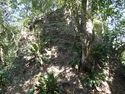 Two distinct architectural styles date to the last period of the site's occupation in the Late Classic.[1] One uses well-carved stone blocks for construction and is possibly earlier than the second style, which is believed to date to the Terminal Classic and uses thin, flat stones.[1]