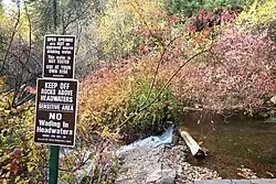 Locals and travelers visit Mt. Shasta City Park for the "Big Springs" headwaters of the Sacramento River. The water was initially glacial melt that had filtered through volcanic rock slowly over time. Many locals treat the Headwaters as their local hangout spot where neighbors and friends convene to chat while filling up giant containers of water which they will use later for cooking and drinking. Some individuals prefer to use the water from the Headwaters over their own tap or well water.[12] There is a sign on display directly next to the headwaters warning visitors that the water has not been tested and may not be safe to drink, and that no wading is allowed.