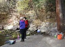 Locals or travelers filling up their water bottles with "Big Springs" water.