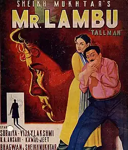 Mr. Lambu is a 1956 Indian Hindi-language Bollywood movie.[1][2][3] The plot revolves around the once popular genre of Rakhi relations, a bond between brother and sister.[4] It stars Suraiya, one of the most popular actresses and singers of the Indian subcontinent of her generation. In the film, Asha Bhosle, one of the most respected playback singers in India,[5] sings three solo songs composed by the award-winning director of cinematic music, Indian composer O. P. Nayyar.