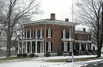 It is credited to architect Archimedes Russell and was built in 1870. It is a two-story, brick Italianate style dwelling. It consists of a main block and rear wing with low hipped roofs. It features a full width, one-story front porch and small side porch with chamfered columns.[2]: 3–4