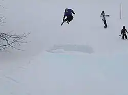 Local skier catching "Big Air" on one of the many jumps at Mulligan's Hollow.