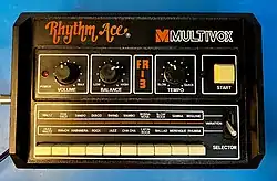 - Rhythm Ace FR-3S (c. 1979) - Multivox version of Rhythm Ace analog drum machine. It seems released after the Multivox/Sorkin Music stopped the engage with former OEM manufacturers, Ace Tone by Ace Electronics and Roland Corporation. AnalogAudio1 on YouTube pointed out the similarity with Korg Mini-Pops hardware.[21]