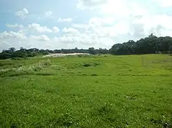 The Muntinlupa Sunken Garden is in the central area of the Poblacion village at the eastern section of the 587-hectare (1,450-acre) prison reservation.[2] It is an open grassland delineated by large canopy trees that serve as a buffer between New Bilibid Prison and the communities in east Poblacion. The roughly 15.8-hectare (39-acre) park borders Jamboree Lake to the north, with the main prison facility and maximum security compound at its southern end. It is bounded by General Paulino Santos Avenue to the south and west, with the main road leading in and out of the prison reservation known as Insular Prison Road, running along the park's northern boundary.
