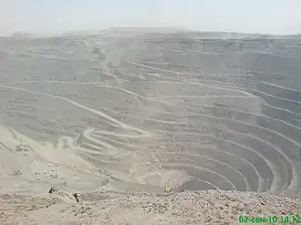 The Muruntau mine (Uzbek: Muruntov koni) is one of the largest gold mines in Uzbekistan and in the world.[1] The mine is located in the mountains of Murintau in the south-west of the Kyzylkum desert, on the territory of the Tamdi district of the Navoi region of Uzbekistan.[1] The mine has estimated reserves of 71,400,000 ounces (2,020 t) of gold.[1]