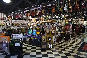 A selection of guitars and amps at Apple Music Row