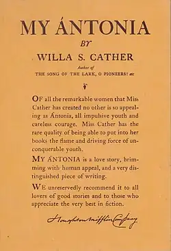 - ^ a b c d Cather, Willa (1994). My Antonia. New York: Dover.