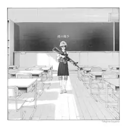 "My War" is Shinsei Kamattechan's fifteenth single and sixth as a limited release, following "Mainichi ga News" (2019). It was used as the opening theme for the fourth season of the Attack on Titan anime series. It is the second song used in the anime after "Yūgure no Tori" (2017). Like "Yūgure no Tori", the cover of "My War" was drawn by Attack on Titan creator, Hajime Isayama.[1] It features a girl, probably Gabi Braun or Ymir Fritz, who are Attack on Titan characters, holding a rifle, dressed in school clothes and standing in the middle of a classroom.[2] In an interview with the Natalie website, Isayama said, "as a loyal fan of Shinsei Kamattechan, I am very happy to see the opening song composed by them."[3]