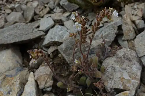 Myosotis australis is morphologically most similar to other ebracteate-erect species from New Zealand, especially Myosotis saxatilis.[5] Several morphological characters can be used to distinguish M. australis from M. saxatilis. The partially bracteate, distally non-bifurcating inflorescence in M. australis can help distinguish it from the obviously bifurcating, ebracteate inflorescence of M. saxatilis.[5] In addition, M. australis has long internodes (>10 mm) between fruits at fruiting, whereas M. saxatilis has short internodes (<12 mm).[5]