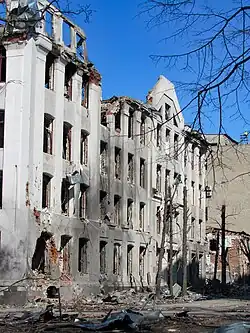 The street suffered extensive damage from Russian shelling; several buildings were completely destroyed. Structures along the entire length of the street, including architectural landmarks, were severely damaged.[9][10][11][12][13][14][15][16]