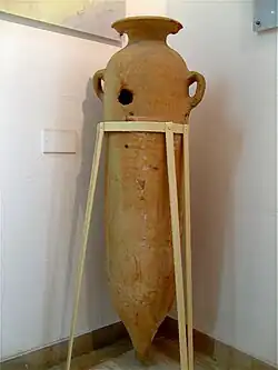 It features objects from ancient Nabeul (Neapolis), as well as items from other archaeological sites of Cape Bon. The Nabeul Museum contains pieces dating from before the Roman period, ceramics and amulets in the ancient Egyptian style of Kerkuane, and terracotta statues from the Punic sanctuary of Thinissut. Roman collections are illustrated by numerous mosaics found at Neapolis. In recent years, the content of the museum is enriched by the acquisition of three mosaics of Kelibia as well as the opening of a hall dedicated to the search of a factory of salting of fish.[3]
