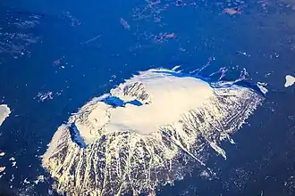 Nadina Mountain, is a remote 2,111-metre (6,926-foot) granitic mountain of volcanic origins located in Nadina Mountain Provincial Park in northern British Columbia, Canada. Situated 30 km (19 mi) south of Houston, British Columbia, it rises 700 m (2,300 ft) above the forested foothills of the rolling terrain of the Nechako Plateau, upon which it is the third highest peak.[3] The peak is a striking feature on the surrounding landscape, and is theorized to have been a refugia during the last glacial period.[4] A diverse community of lichen species grows on the summit plateau, but few vascular plants grow due to nutritionally poor soils from the granitic substrate. Vegetation below treeline consists mostly of subalpine fir. The mountain was established as a park in 2008 due in large part to its wildlife habitat status, especially for mountain goats. The park size is 2,789 hectares. The nearest higher peak is Mount Ney, 41.7 km (25.9 mi) to the southwest, and precipitation runoff from Nadina drains into tributaries of the Fraser River.[3] Based on the Köppen climate classification, Nadina Mountain is located in a subarctic climate zone with cold winters, and mild summers.[5] Temperatures can drop below −20 °C with wind chill factors below −30 °C.