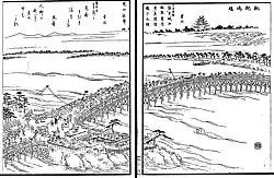 Depiction of the Biwajima Bashi with Nagoya Castle in the background] (from the Owari meisho zue)