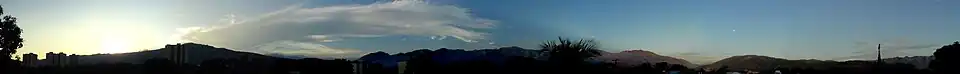 The Naguanagua (Spanish pronunciation: [naɣwaˈnaɣwa]) municipality is one of the 14 municipalities (municipios) that makes up the Venezuelan state of Carabobo and, according to the 2011 census by the National Institute of Statistics of Venezuela, the municipality has a population of 157,437.[1] The town of Naguanagua is the shire town of the Naguanagua Municipality.[2] It forms part of the greater Valencia Metropolitan Area in Venezuela. It is in the valley of the Cabriales River at the base of Cerro El Café and the El Trigal Mountain. Valencia and Naguanagua form a continuous urban area. The highway that runs from the centre of Valencia towards Puerto Cabello passes through this community; Bolivar Avenue in Valencia becomes University Avenue in Naguanagua on the northern side of a traffic roundabout, or redoma.